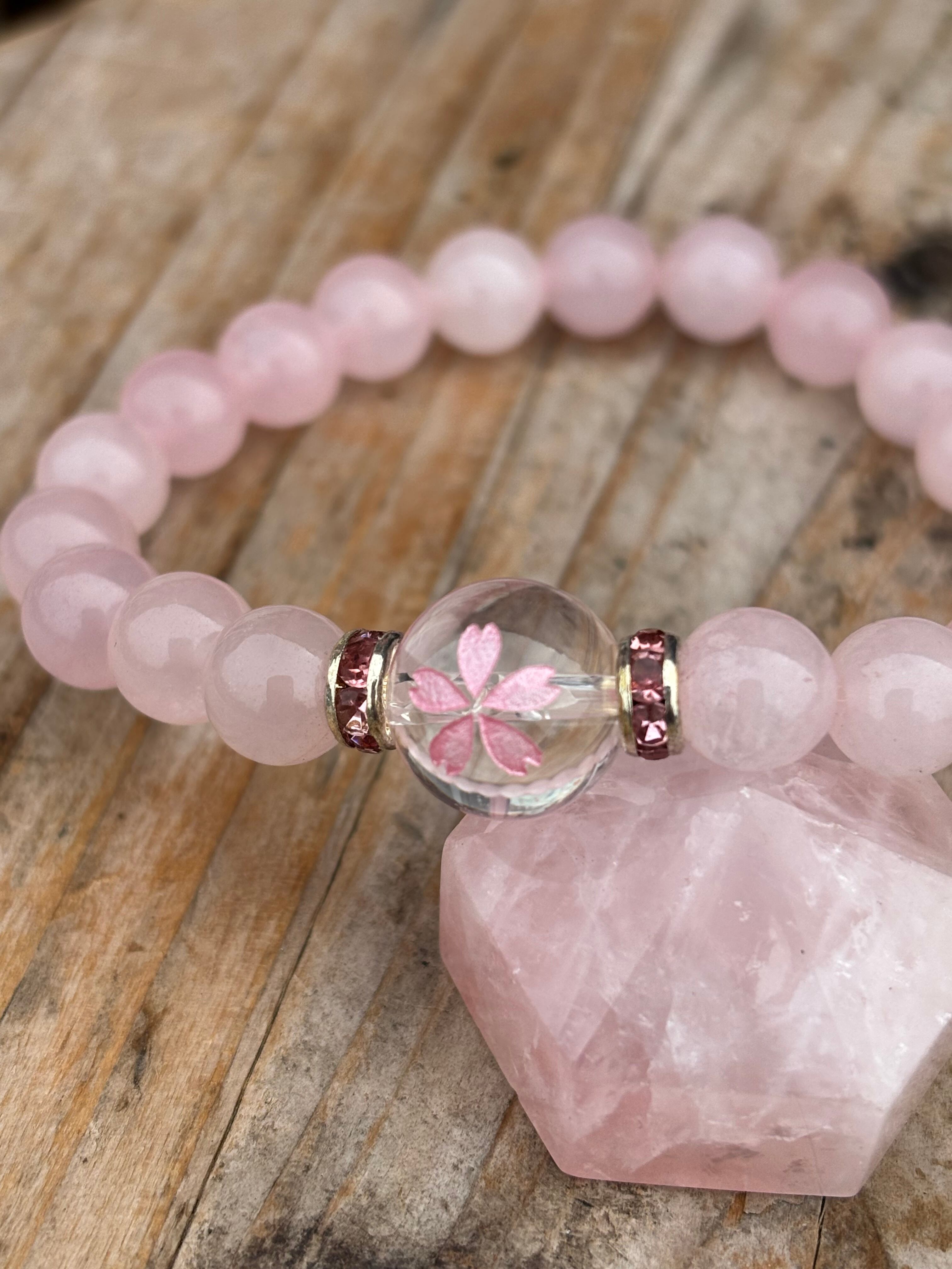【魅力的】サクラ彫り水晶付きブレスレット【ローズクォーツ】が新登場です!優しいローズクォーツの色合いと、繊細なサクラ彫りデザインが、あなたの手元に華やかさをプラスします。このブレスレットは、日常使いはもちろん、特別なイベントやお出かけの場面でも幅広く活躍することが期待されます。