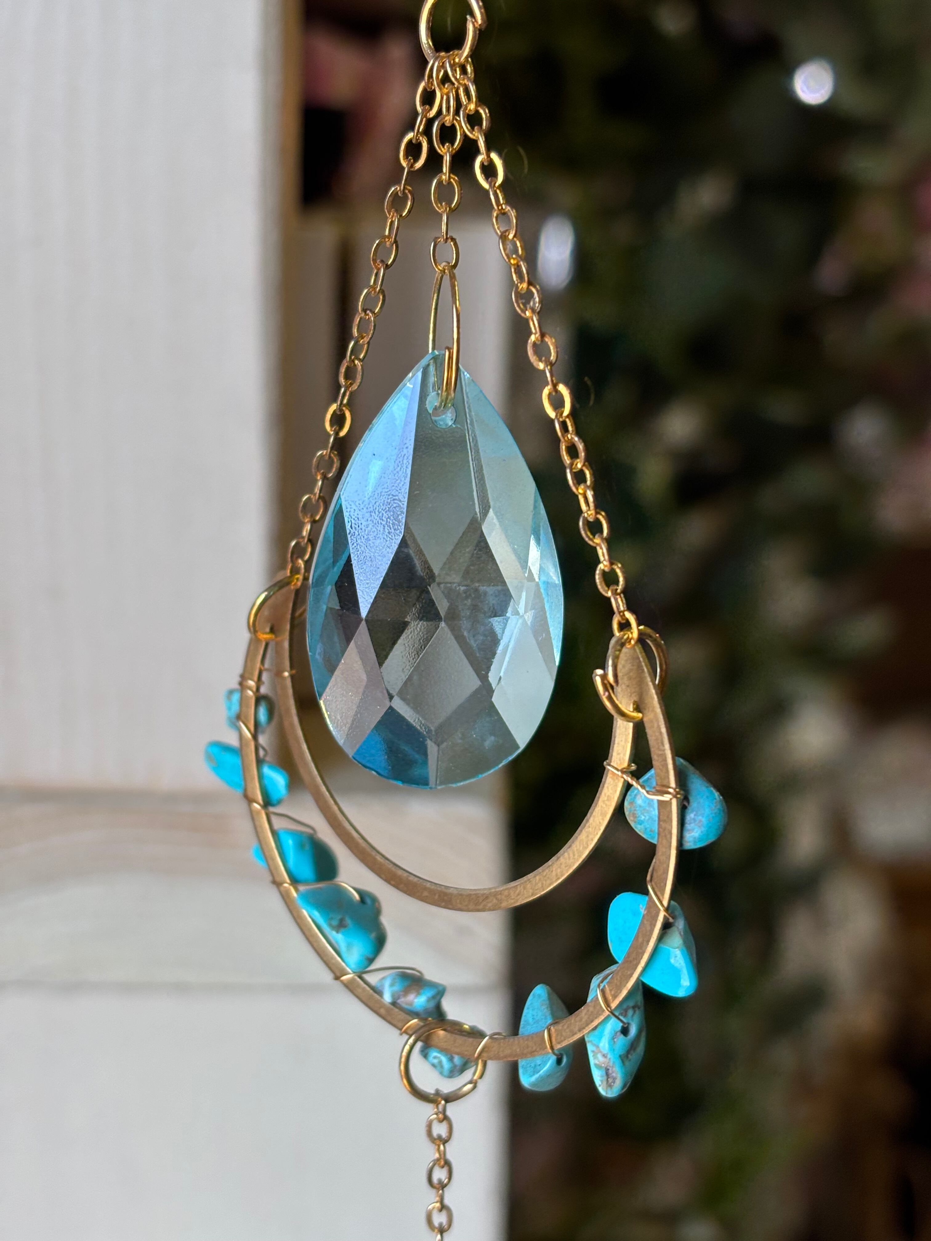【魅力的】天然石サンキャッチャー ブルーが新登場です!深い青色の天然石と光を操る美しいデザインが見事に融合したこのサンキャッチャーは、あなたの空間をより心地よく、特別な雰囲気で彩ることが期待されます。