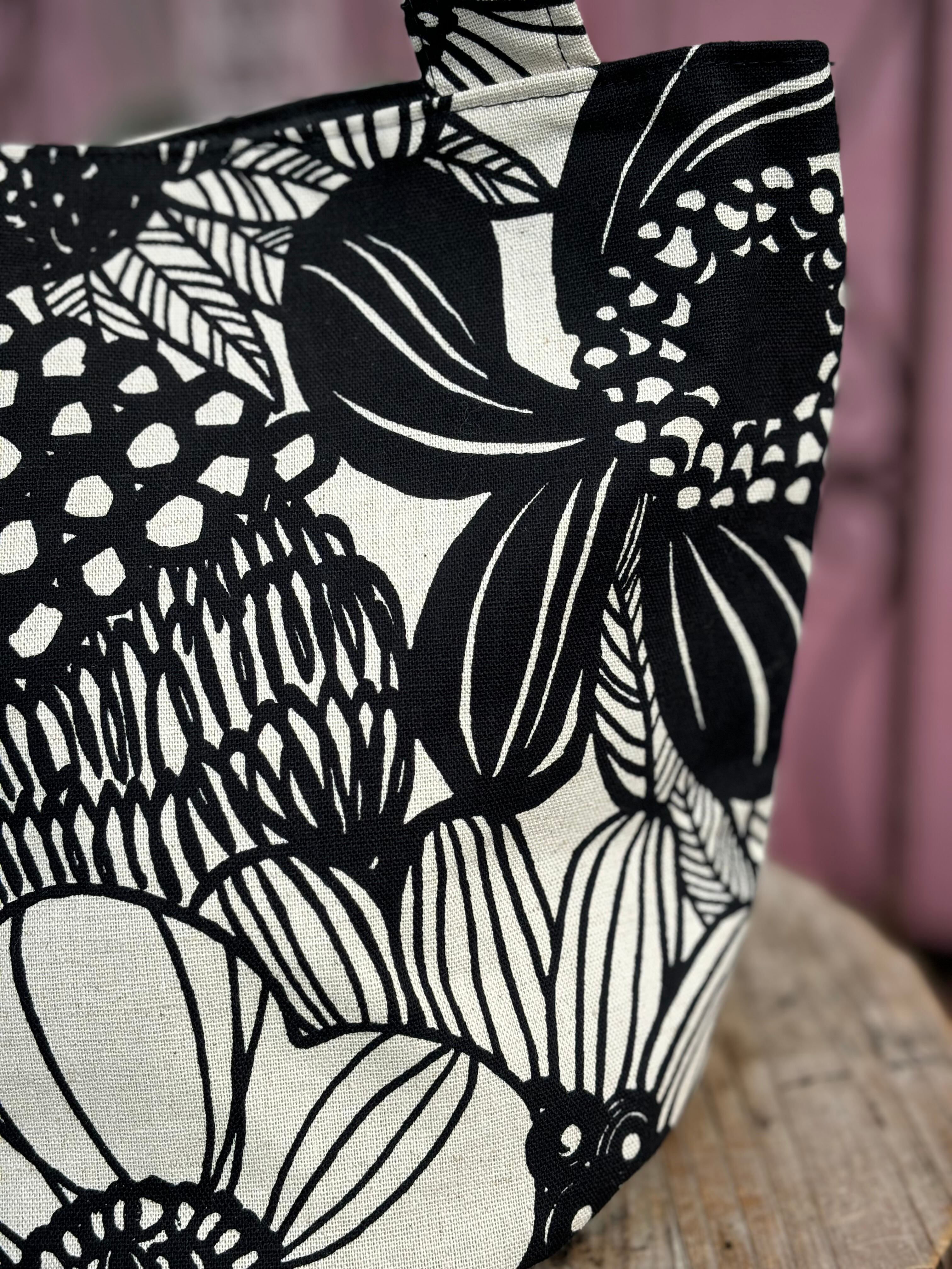 大胆なビックフラワープリントがアクセントのバケツ型トートバッグ、それがこの【ビックフラワー】。北欧柄のトレンドデザインを取り入れつつも、使いやすさも念頭に置いて作られたバッグは、お出かけや旅行にぴったりのアイテムです。広めの口が取り出しやすく、たっぷり収納できる容量も魅力のひとつ。