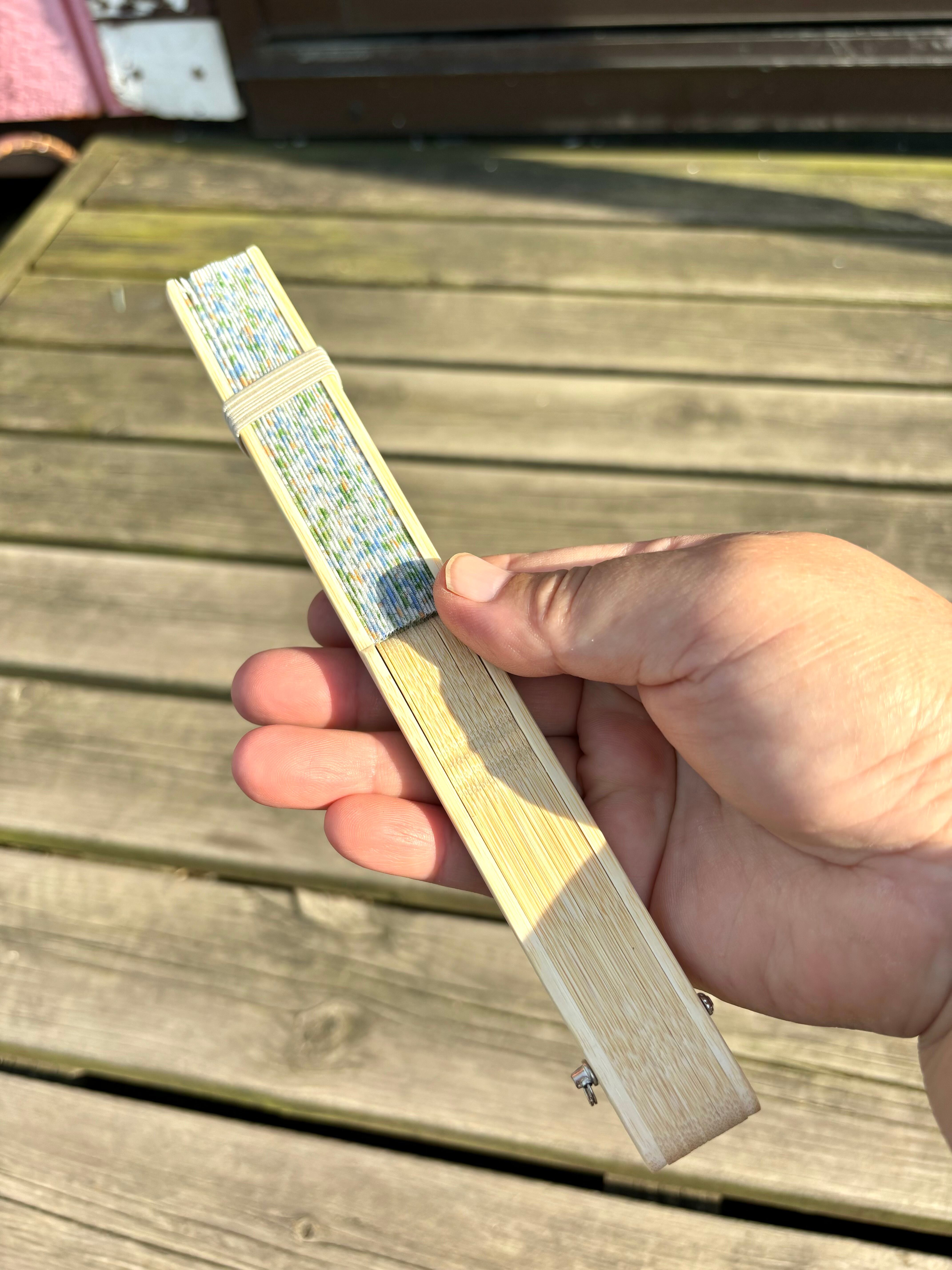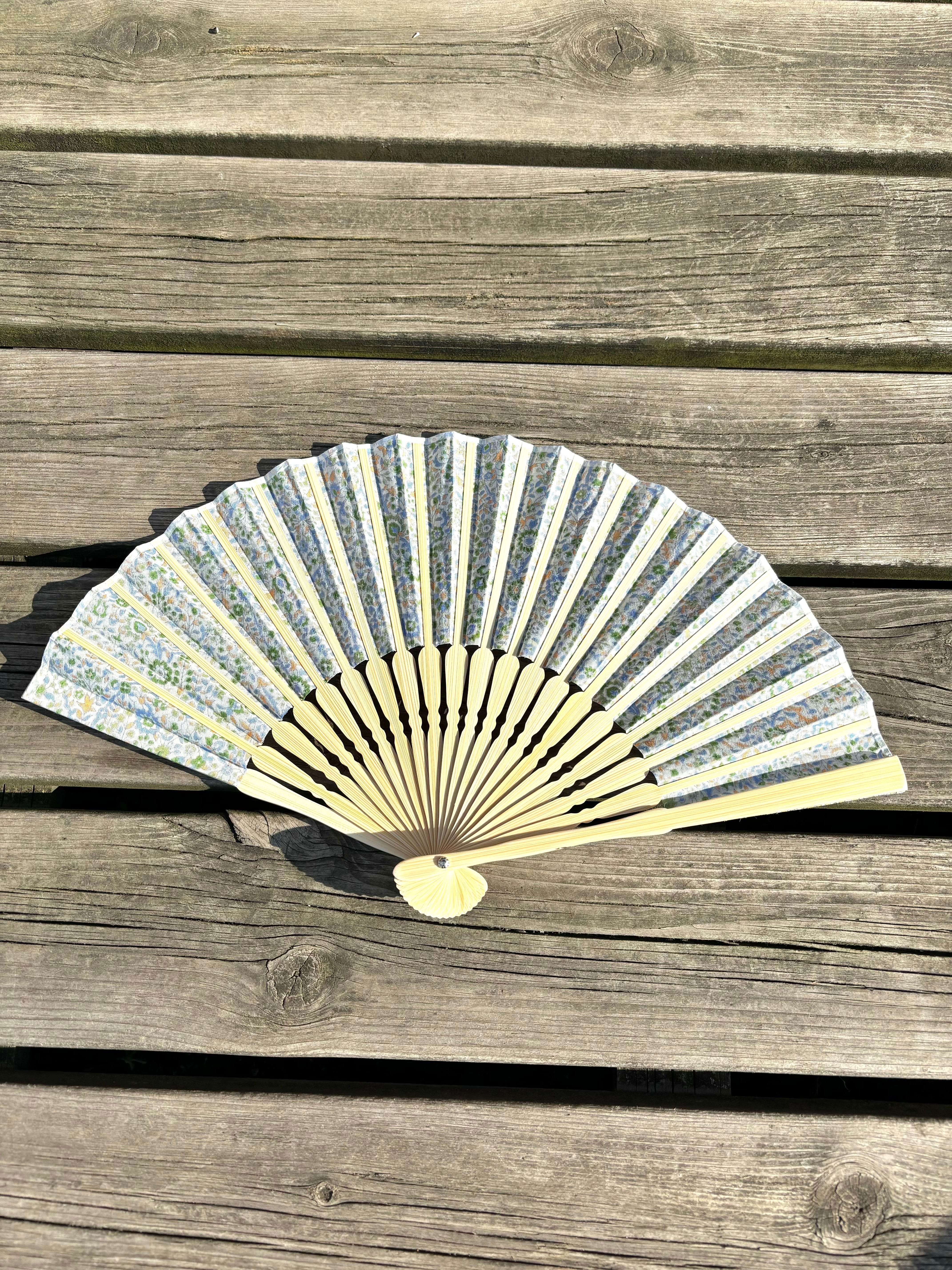 小花柄せんす【グリーン】は、可愛らしい花柄が特徴の涼しげな和風扇子です。手元に持ちやすいサイズ感で、お出かけ時やお部屋でのリラックスタイムに最適です。日本の伝統的なデザインに現代風のカラーリングを取り入れた、おしゃれなアイテムとして、お客様からも大変ご好評いただいております。