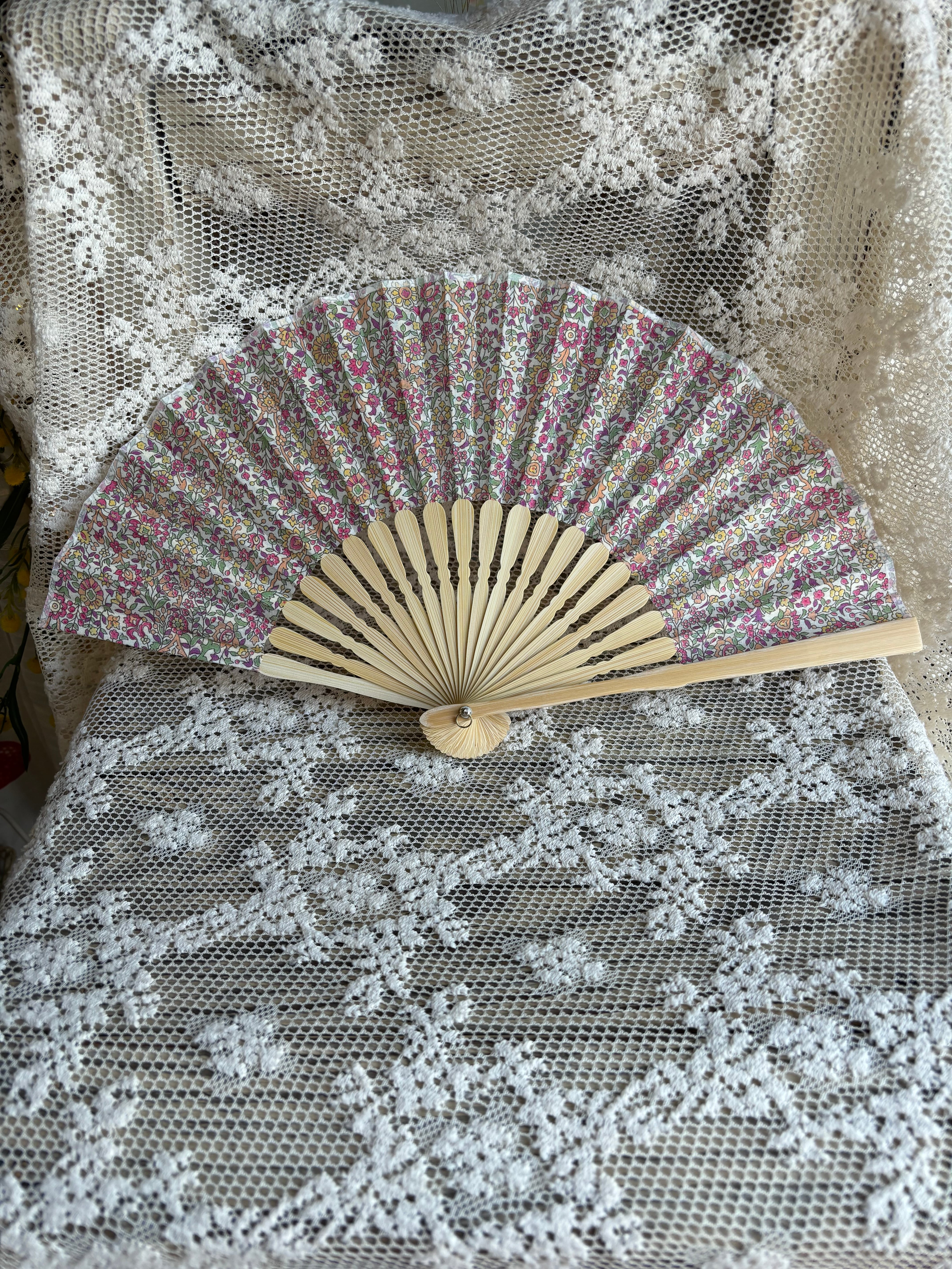 小花柄せんす 【ピンク】は、可愛らしいピンクの花柄が特徴のせんすです。日本の伝統的な柄とカラーを取り入れた、和を感じさせるデザインです。綿100%の素材でできているため、肌触りも心地よく、さらっとした着心地を楽しむことができます。