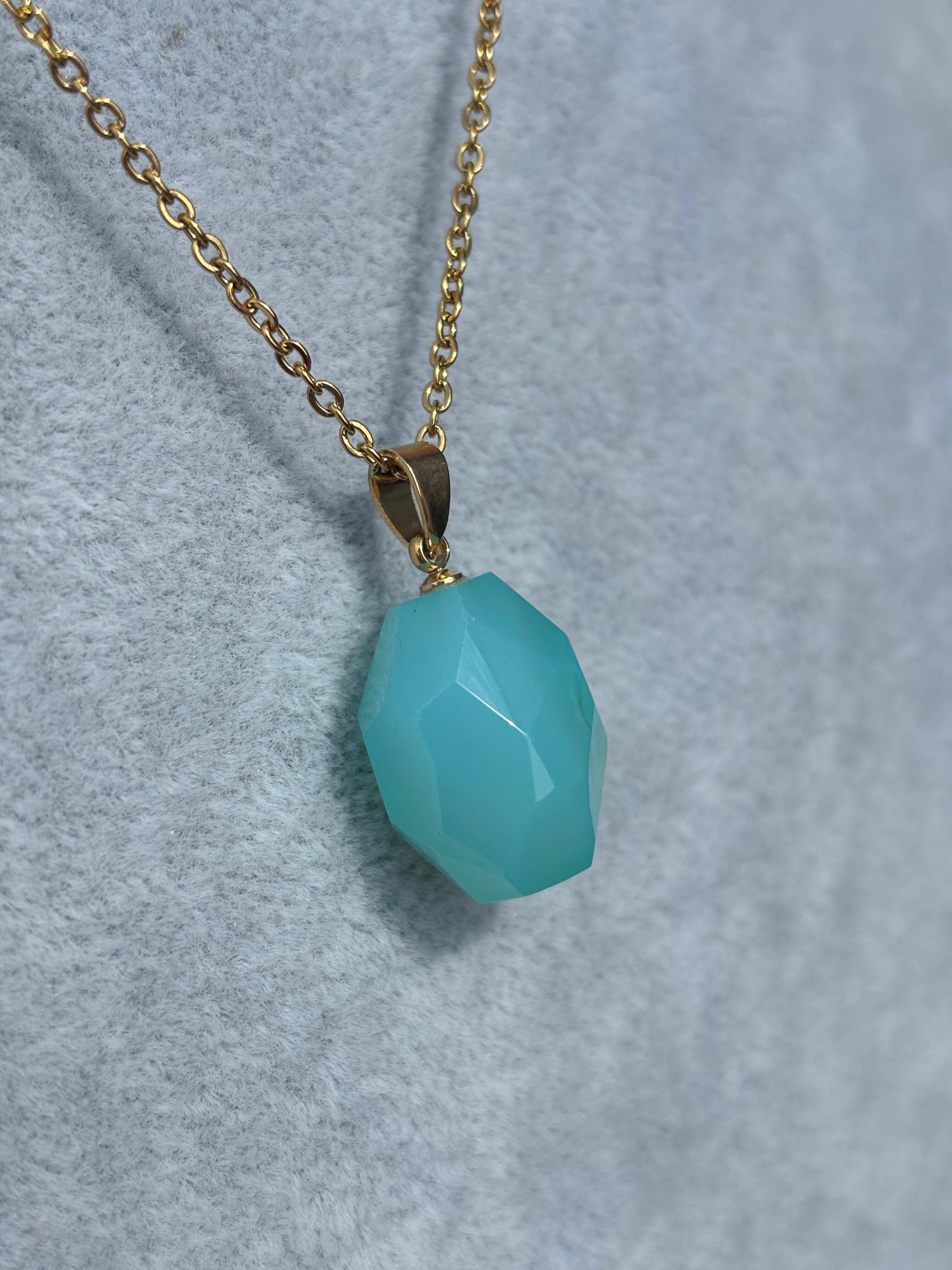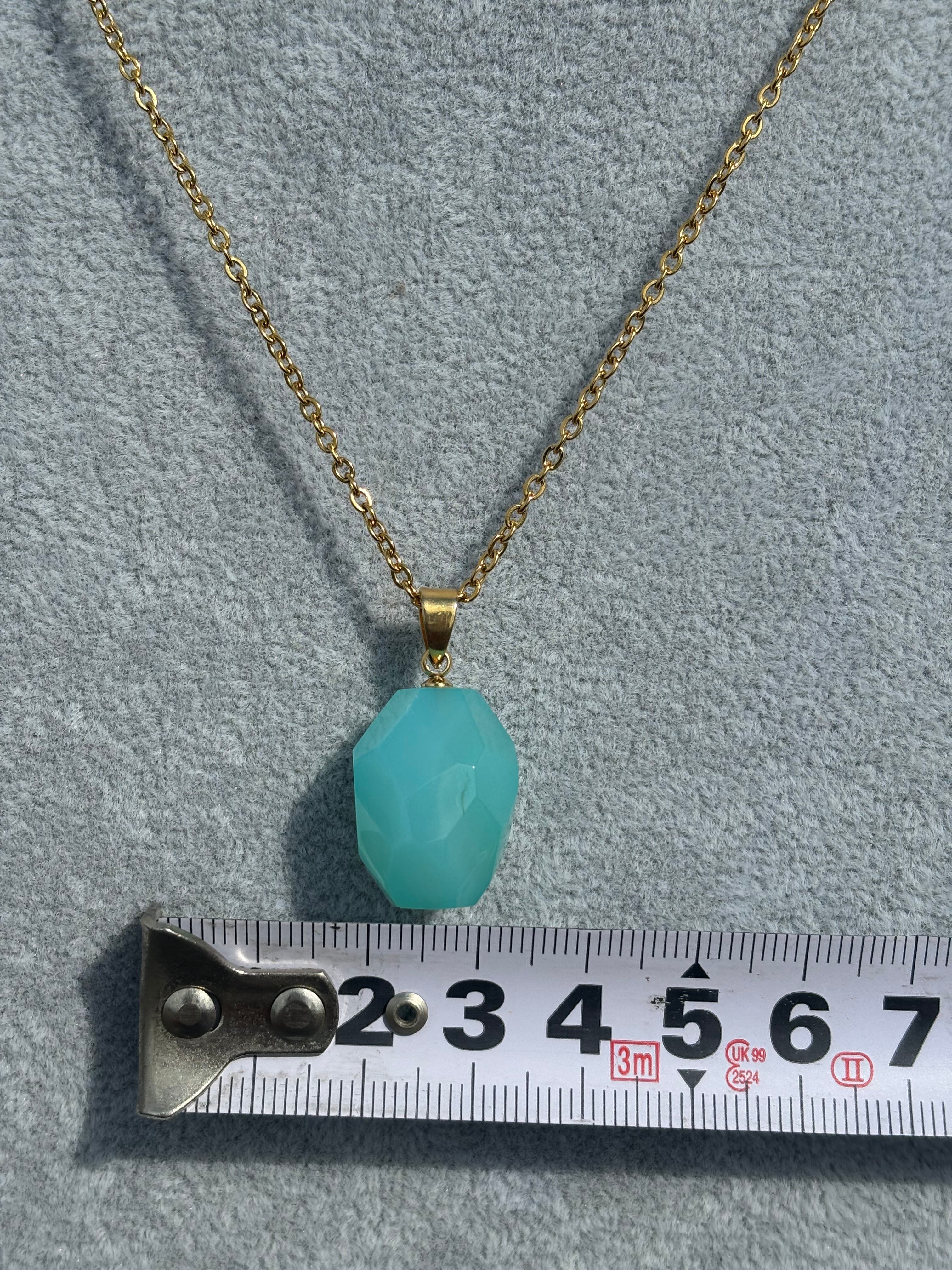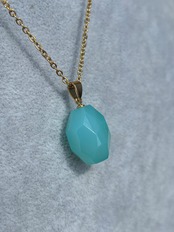天然石 シーブルーガルセドニーペンダントトップは、天然のシーブルーガルセドニーを使用した、高品質なペンダントトップです。ゴールドカラーのステンレス金具が、上品でラグジュアリーな雰囲気を演出してくれます。シンプルなデザインなので、どんなファッションスタイルにも合わせやすく、日常使いから特別な日まで幅広く活躍してくれます。