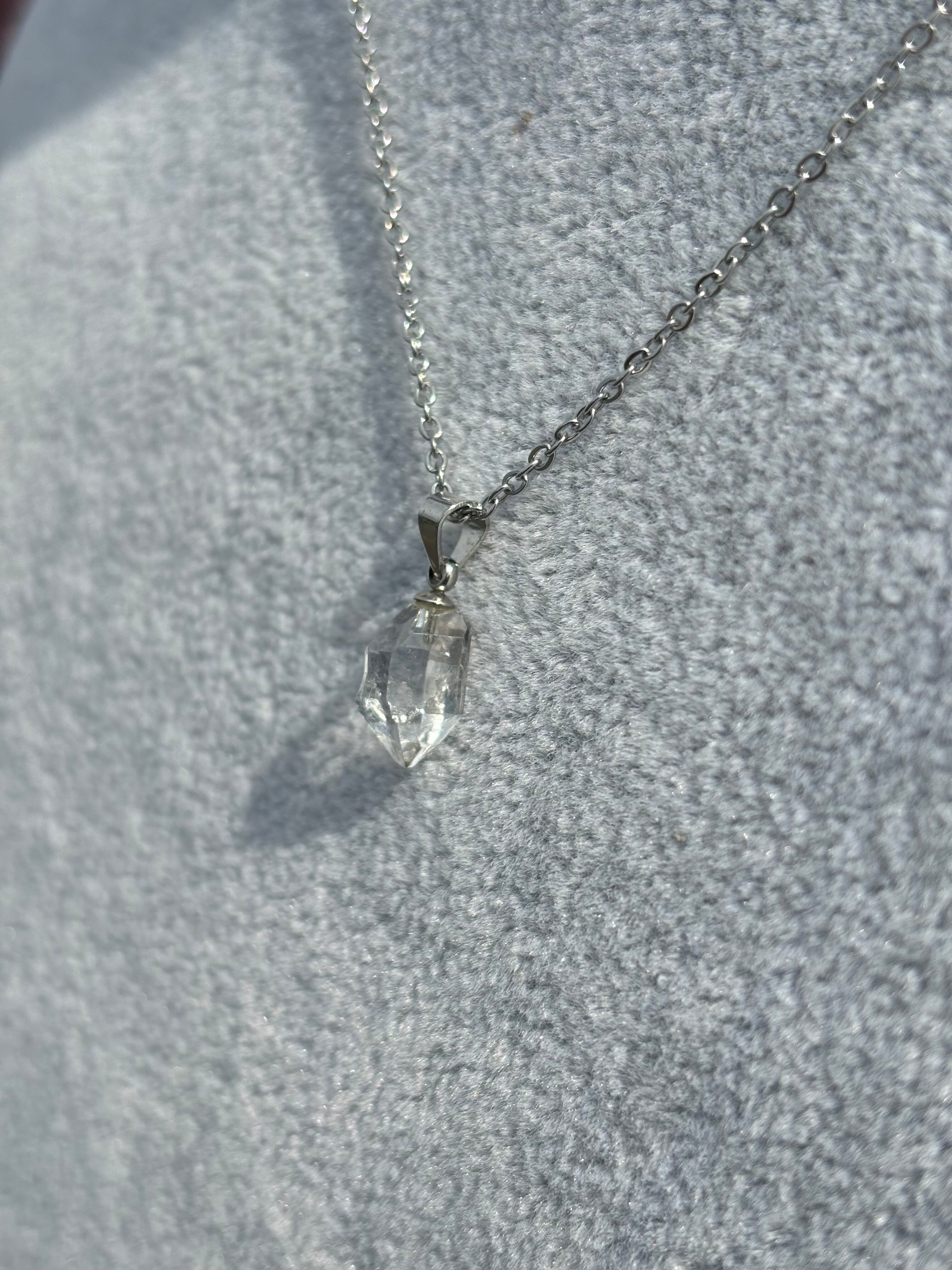 パワーストーンとして知られるハーキマークォーツの天然石を贅沢に使用したペンダントトップ。
