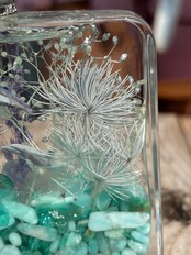 リラックス効果があるハーバリウムに、幸運をもたらす天然石を加えた癒しアイテム。