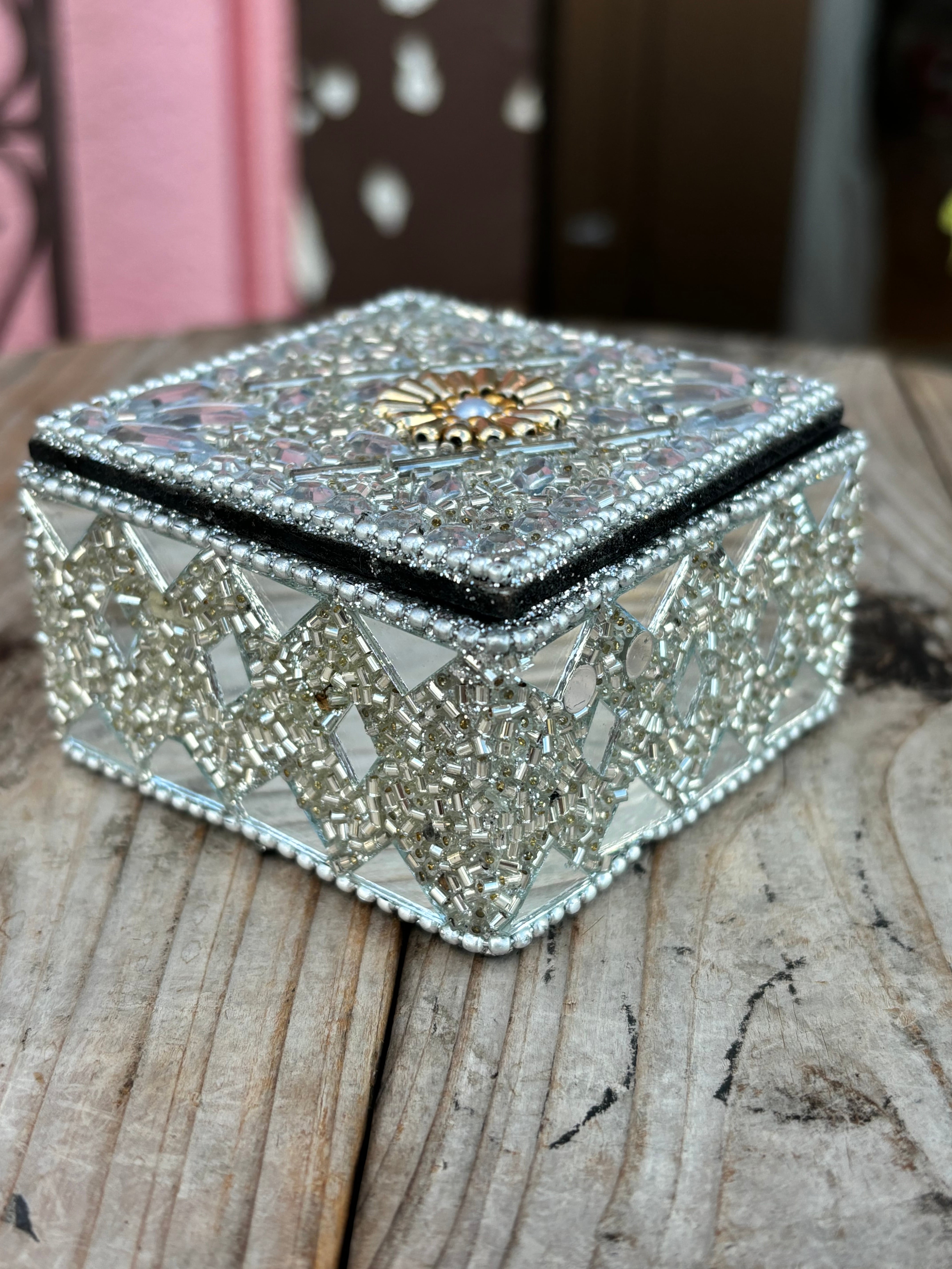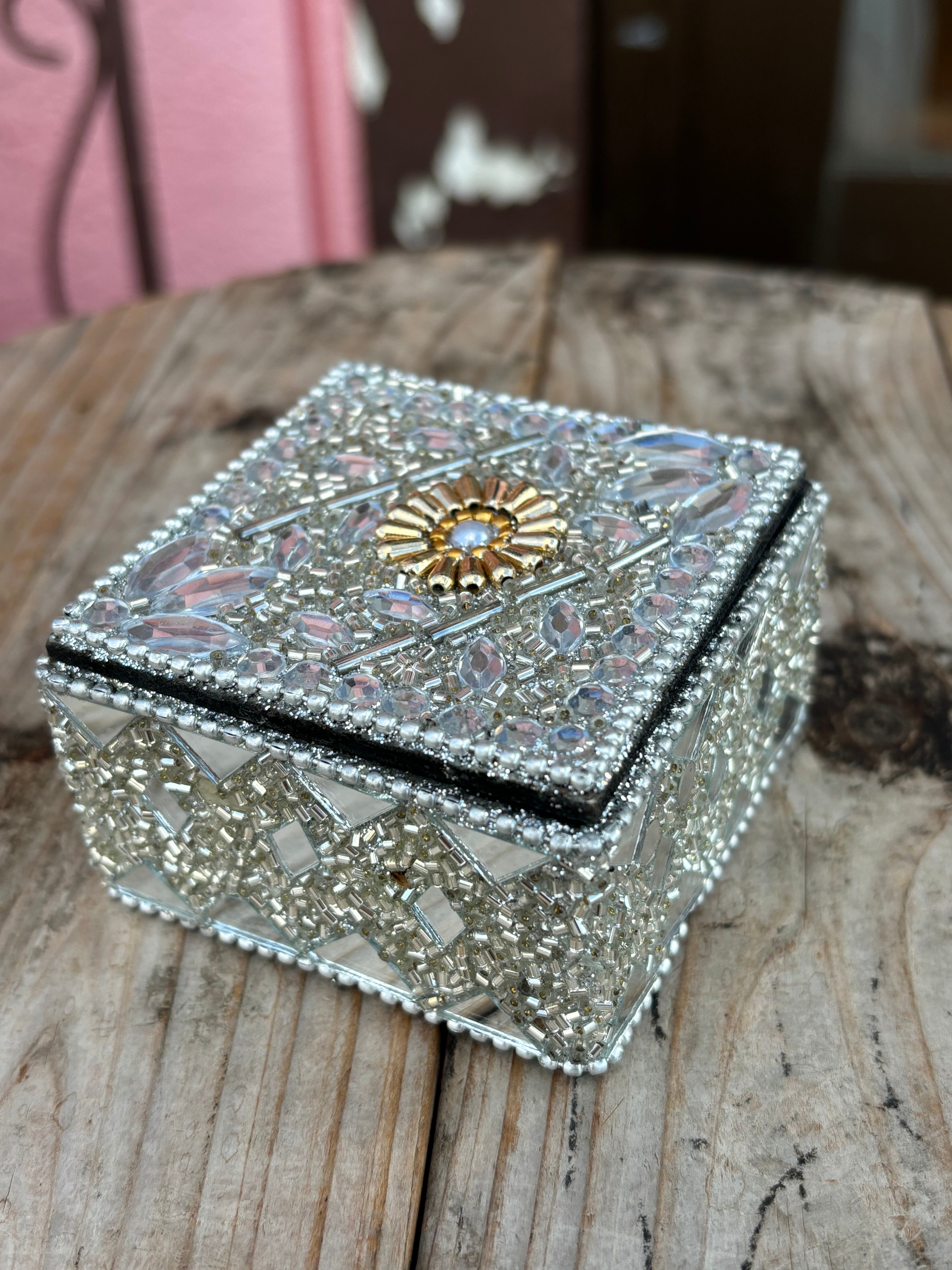 【魅力的】キラキラビーズスクエアBOX 【シルバー】が登場です!輝くシルバーカラーと洗練されたスクエアデザインが、あなたのインテリアに華やかさを添え、特別なひとときを演出します。そのユニークなスタイルと実用性が特長で、小物をおしゃれに収納しながらもインテリアとして楽しめる素敵なアイテムです。